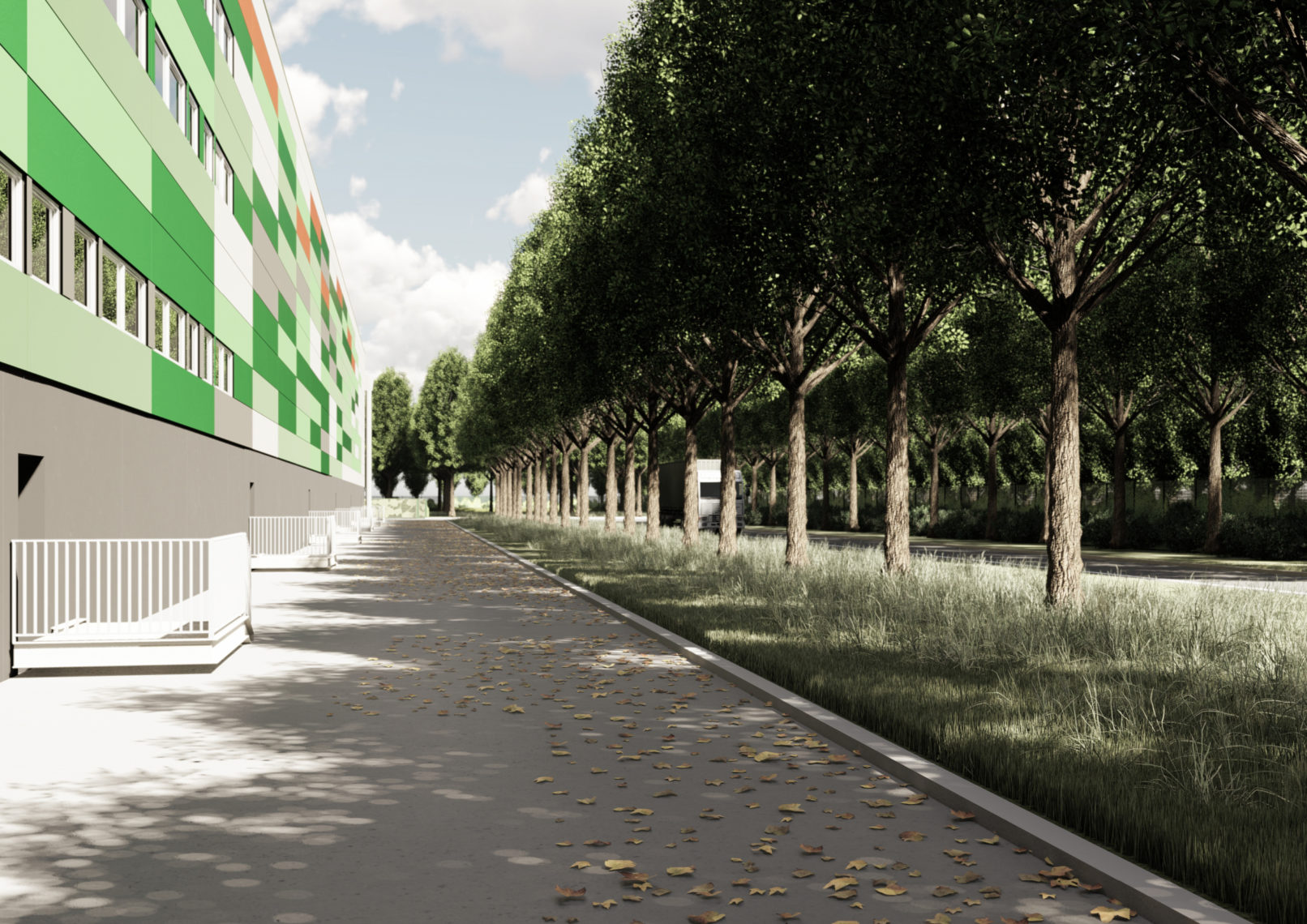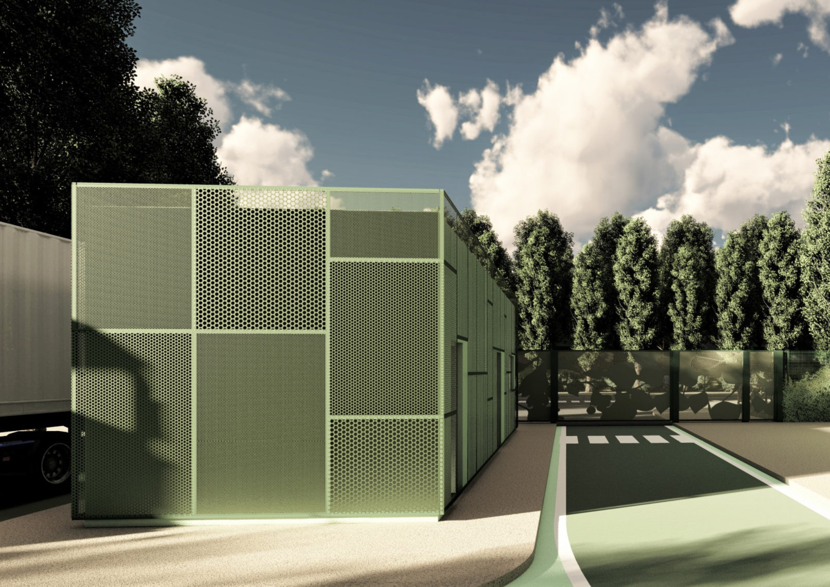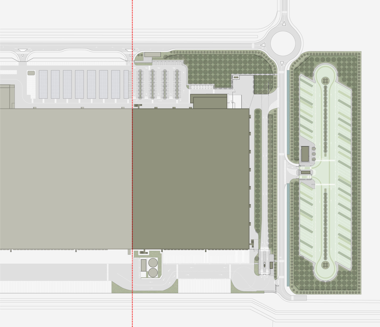 Il progetto paesaggistico per ampliamento del polo logistico si è posto come principale scopo quello di perseguire una buona qualità architettonica dell’edificato attraverso una progettazione attenta alle caratteristiche architettoniche e al loro armonioso inserimento nel contesto naturale esistente. Considerate le dimensioni imponenti del fabbricato si è posta particolare attenzione sulle soluzioni progettuali che dessero i risultati migliori per poter rendere il meno impattante possibile la costruzione sul contesto naturale circostante. La proposta, utilizzando gli stessi effetti cromatici del volume originario, ha come scopo principale quello di mettere in evidenza il nuovo corpo edilizio dell’ampliamento, creando tuttavia una discontinuità che permetterà di alleggerire e spezzare il lungo continuum dei prospetti nord e sud. Il progetto prevede di creare, alle estremità del nuovo ampliamento, una sfumatura cromatica