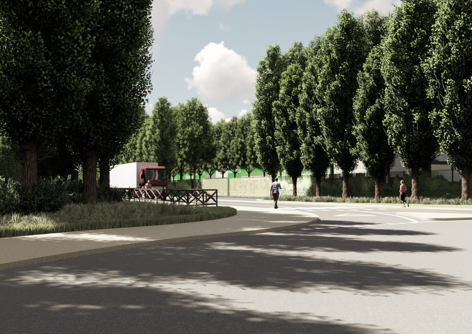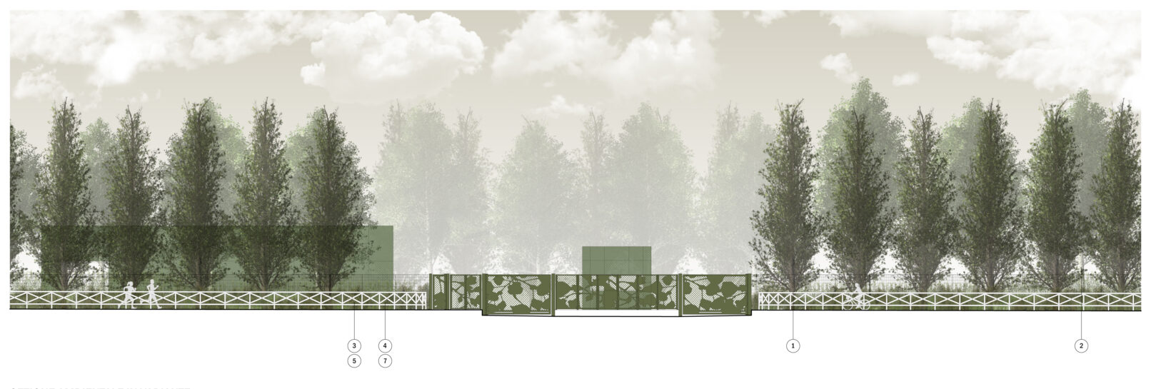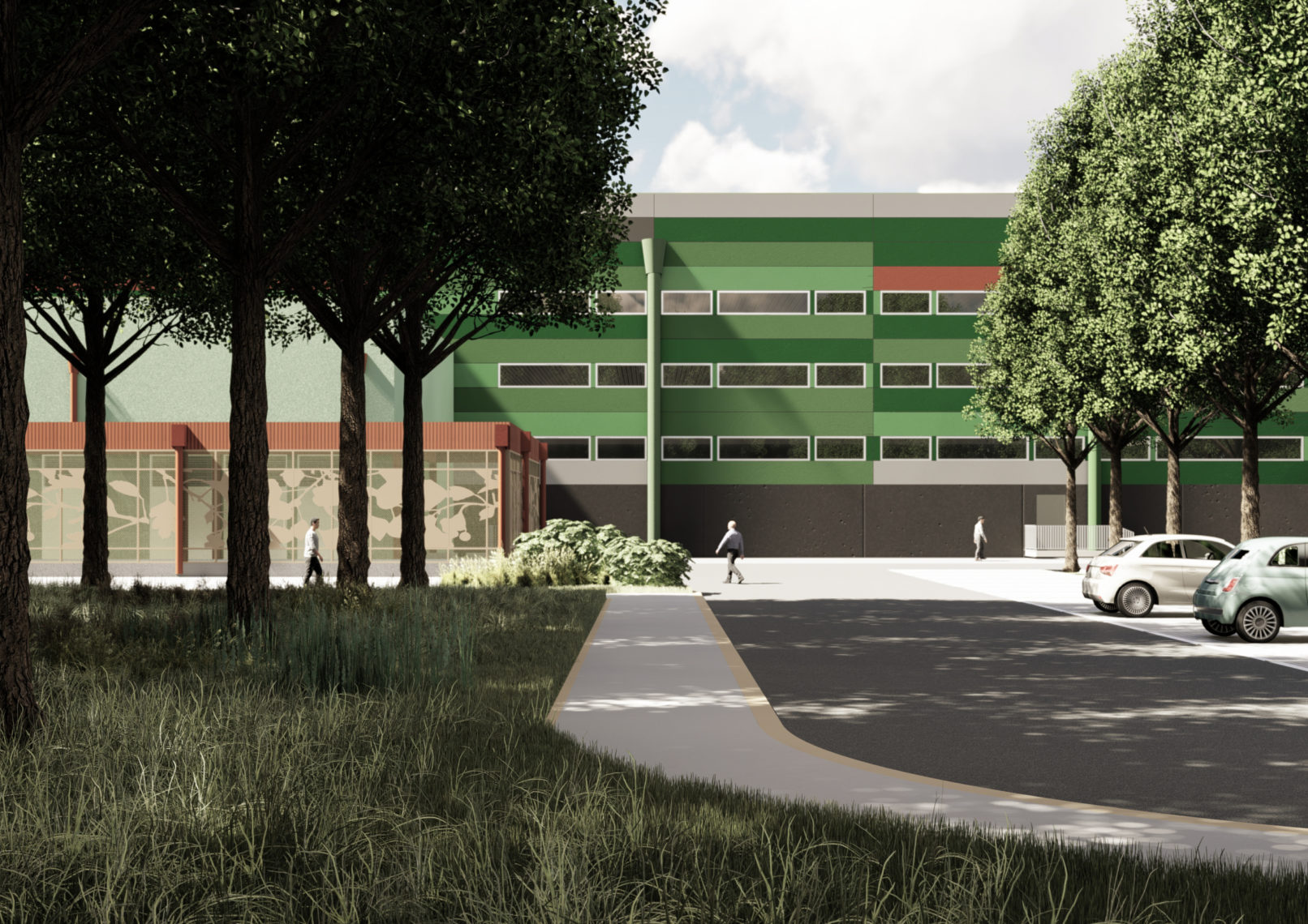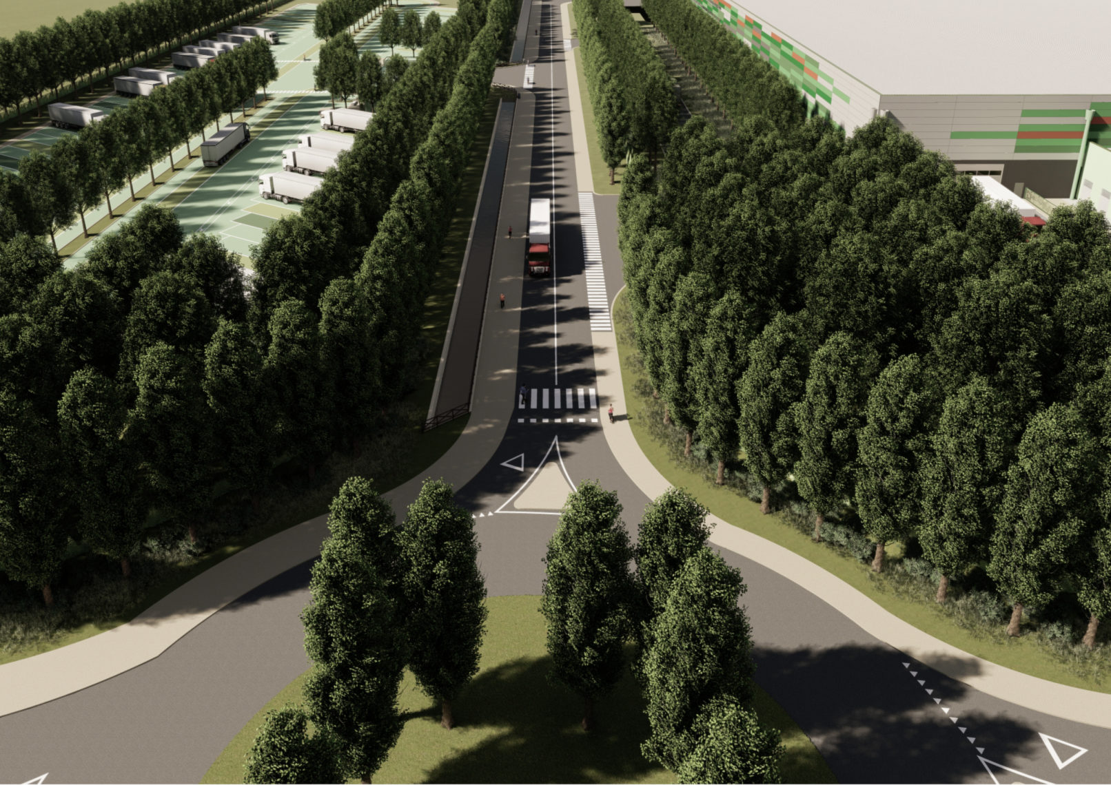 Il progetto paesaggistico per ampliamento del polo logistico si è posto come principale scopo quello di perseguire una buona qualità architettonica dell’edificato attraverso una progettazione attenta alle caratteristiche architettoniche e al loro armonioso inserimento nel contesto naturale esistente. Considerate le dimensioni imponenti del fabbricato si è posta particolare attenzione sulle soluzioni progettuali che dessero i risultati migliori per poter rendere il meno impattante possibile la costruzione sul contesto naturale circostante. La proposta, utilizzando gli stessi effetti cromatici del volume originario, ha come scopo principale quello di mettere in evidenza il nuovo corpo edilizio dell’ampliamento, creando tuttavia una discontinuità che permetterà di alleggerire e spezzare il lungo continuum dei prospetti nord e sud. Il progetto prevede di creare, alle estremità del nuovo ampliamento, una sfumatura cromatica