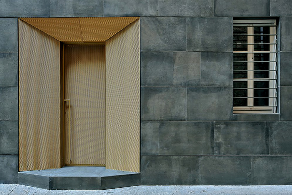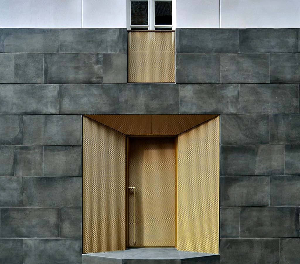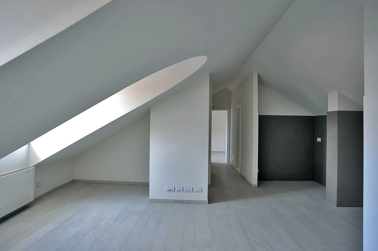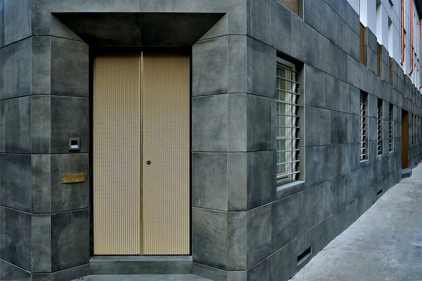 Si è determinato il disegno delle facciate su un ritmo cadenzato regolare e sulla ricerca della simmetria. Le finestre sono state riunite in blocchi da tre, distanziati equamente da assi di simmetria determinati (ingressi). L’opera, minimale e simbolica, cerca di inserirsi armoniosamente nel contesto storico esistente attraverso un gioco tipologico di rilettura dei modelli architettonici consolidati, per raggiungere una modernità più ricercata. Le facciate verso il cortile interno, sono caratterizzate da una serie regolare di portefinestre su lunghi balconi. I prospetti interni, intonacati, presentano fasce marcapiano e basamento in bande orizzontali bugnate e sono completamente tinteggiati di bianco. La soluzione stilistica adottata ha cercato di accentuare, per contrappunto, il senso ed il carattere del luogo, attraverso materiali, forme e tecniche che aggiornino e proiettino verso il futuro i segni e i valori del passato. Gli espliciti riferimenti stilistici del progetto qui presentato sono due famosissime opere: l’immobile “Goldman& Salatsch” a Vienna di Adolf Loos (1909) e l’edificio denominato “Bonjour tristesse” a Berlino di Alvaro Siza (1980), già citazione e omaggio allo stesso Loos.