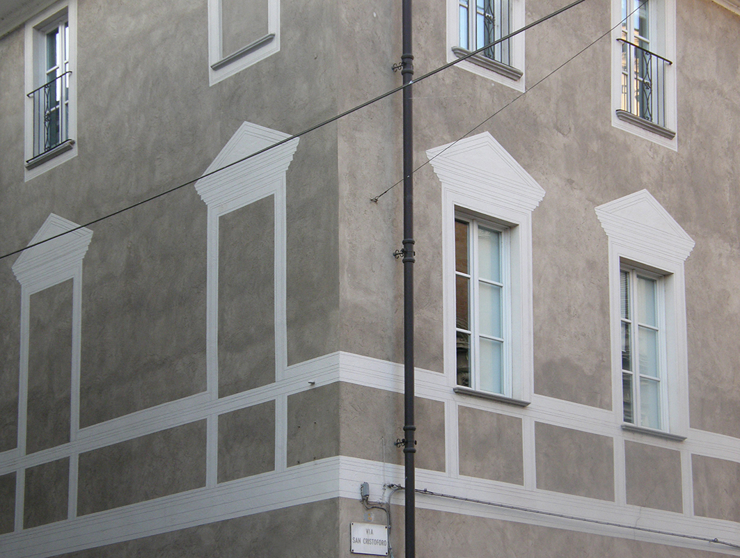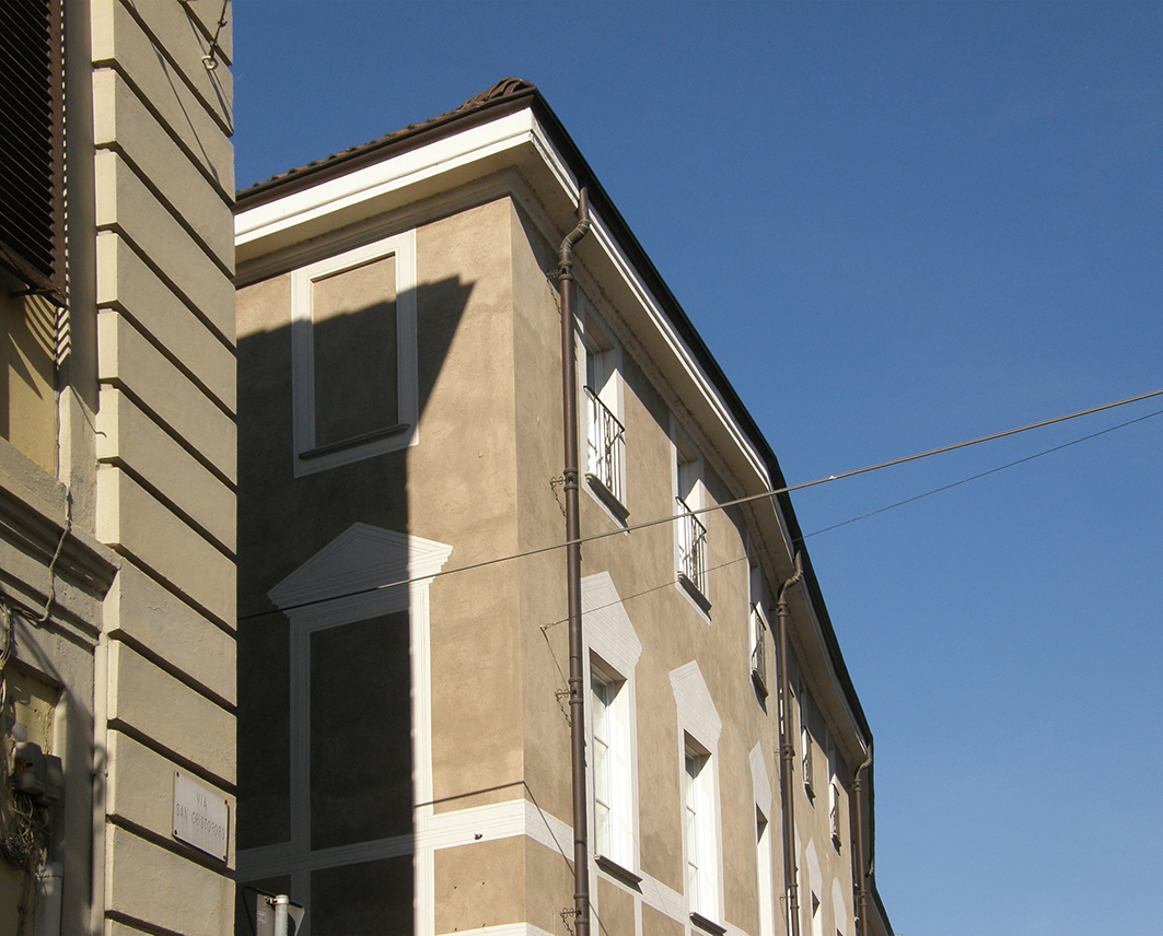 Il presente progetto ha per oggetto la sistemazione di un fabbricato sito in Vercelli all’angolo di via San Cristoforo con via Piero Lucca. L’immobile di forma a “ C “ irregolare con il lato lungo su via San Cristoforo, e’ costituito principalmente da tre corpi . I blocchi probabilmente sono stati realizzati in epoche differenti: la parte su via San Cristoforo di maggiori dimensioni e’ di tre piani fuori terra mentre la zona d’angolo su via P. Lucca e’ di due piani fuori terra cosi come pure quella prospettante il cortile interno. I fronti dell’edificio si presentano severi e scarni, privi di elementi architettonici ornamentali e decorativi e sono riconducibili a modelli edilizi correnti all’epoca di costruzione. Il progetto proposto pertanto si e’ limitato ad interventi mirati, ridotti all’essenziale e comunque ispirati al massimo rigore,